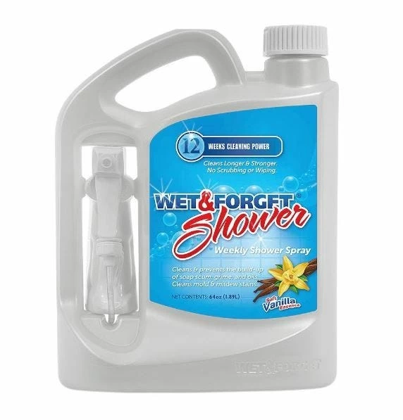 Get your shower clean without all the fuss, Wet and Forget Shower – the easy-to-use weekly shower spray. Simply spray your shower with Wet & Forget, once a week, to clean and prevent the build-up of soap scum, body oils and shower grime. Cleans mold and mildew stains, too. Spray Wet & Forget Shower on fixtures, shower curtains, enclosures, glass, tiles, tubs and more. There’s no wiping or scrubbing. The next day, simply rinse clean. Wet & Forget Shower is non-abrasive, so it won’t scratch or dull as it cleans. Wet & Forget Shower Spray today, rinse clean tomorrow. Who knew cleaning your shower could be so easy.