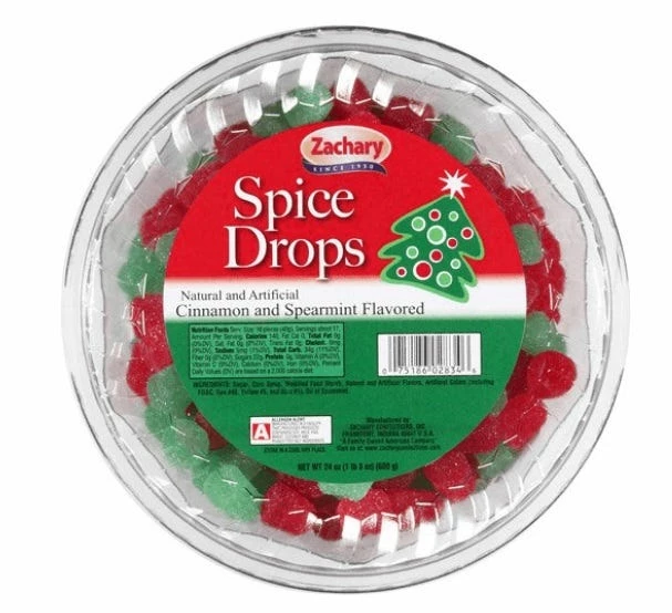 Our holiday red and green spice drops are bursting with cinnamon and spearmint flavor. Packed in an acetate tub these spice drops are a holiday favorite for many.
