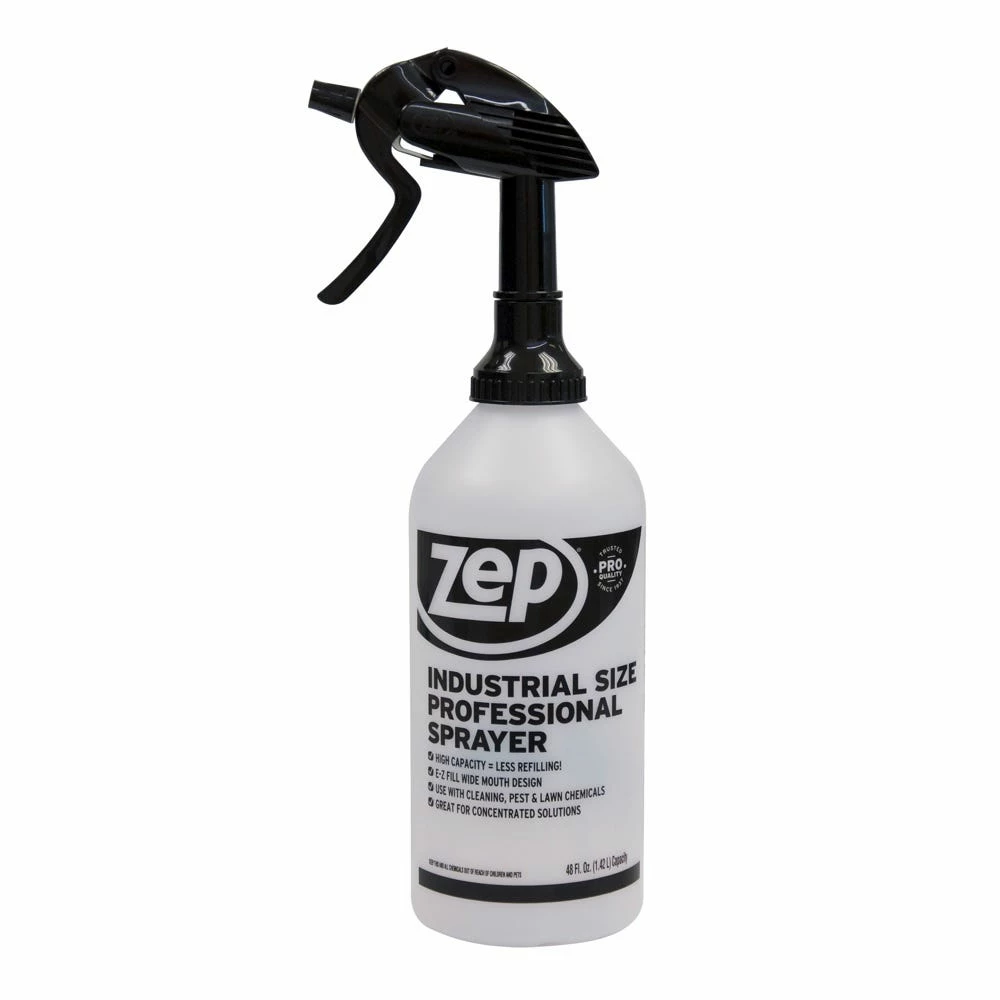 The ZEP 48 oz. Industrial Pro Sprayer provides commercial & residential cleaners alike with an affordable, convenient, comfortable solution to meet their cleaning needs. The Industrial Sprayer conveniently empowers commercial and industrial professionals to perform cleaning, maintenance, and lawn care duties with ease and efficiently. Homeowners and hobbyists alike will enjoy the versatility and convenience of the pro sprayer design. Great for concentrated solutions, expect more from the Industrial Pro Sprayer! This high-capacity sprayer saves refill time with 50% more capacity, saving you time and money. The E-Z fill wide mouth design allows for less accidental waste and more time spent at the task at hand. The ergonomic high-output trigger is comfortable to use, allowing you to clean pain free. The industrial pro sprayer sprays 3X more per pull than regular sprayers, making quick work of larger tasks and projects. The Industrial Pro Sprayer is designed for concentrated chemical use with cleaning, pest, and lawn care chemicals. Ensure a job well done and time well spent with this convenient, easy to use, pro sprayer!